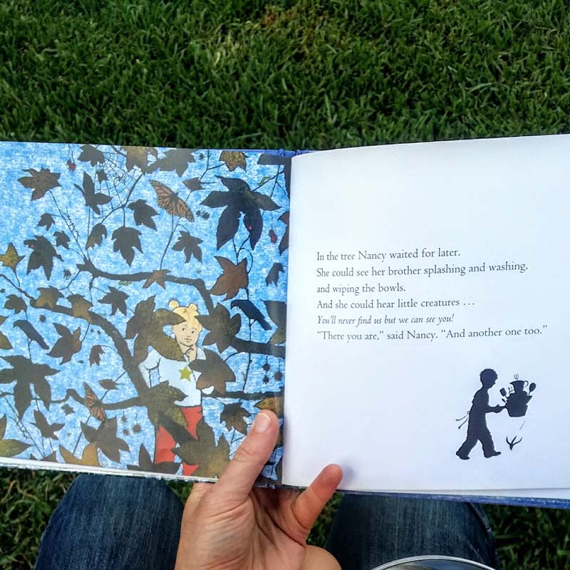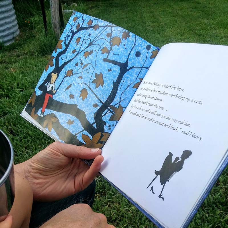 In the story, when Nancy is thwarted she goes to climb a tree instead. Here is where I love the story even more. It demonstrates the range of sensory and creative feedback something as simple as climbing a tree can provide for children.