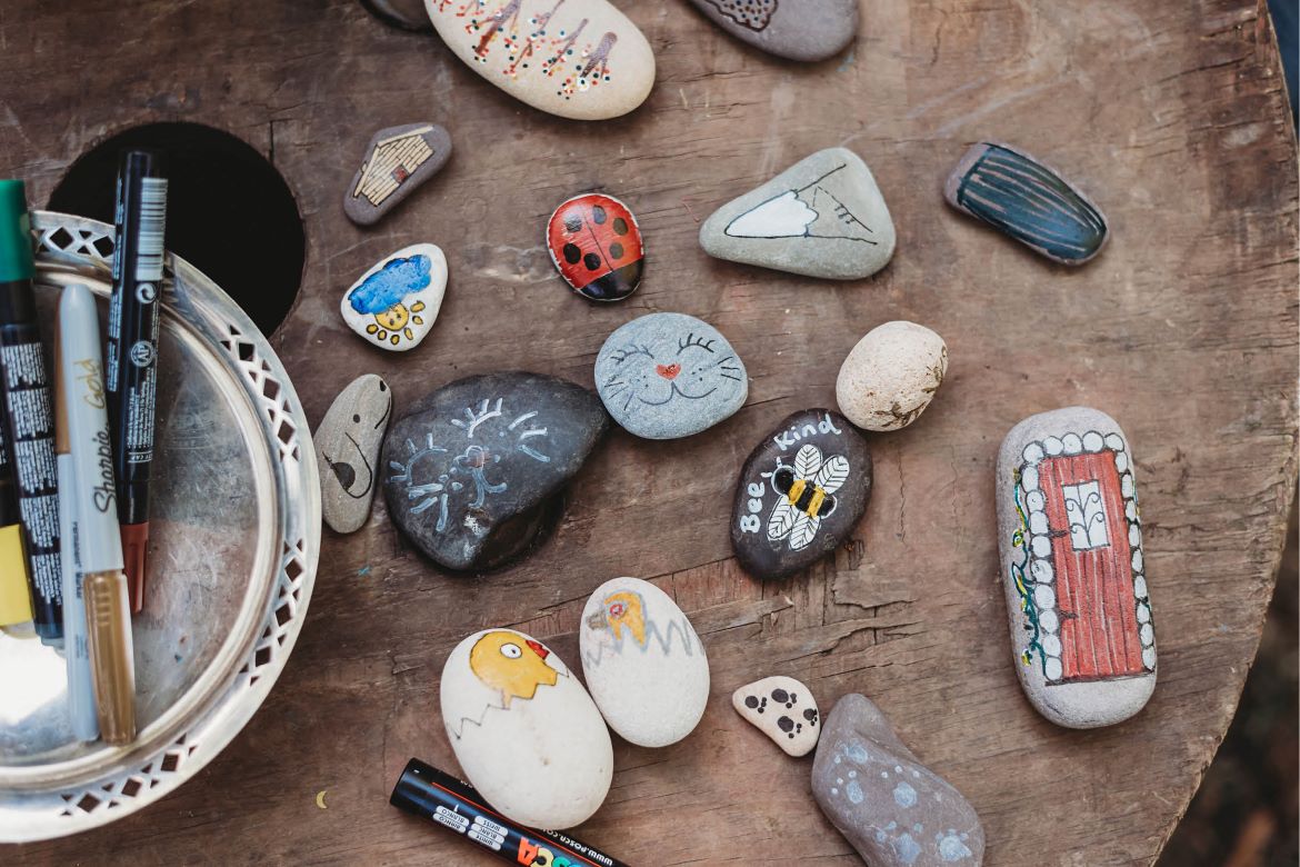 Collect smooth rocks of different sizes, shapes and colours. You might need to wash and dry them before drawing on them if they are a little dirty.