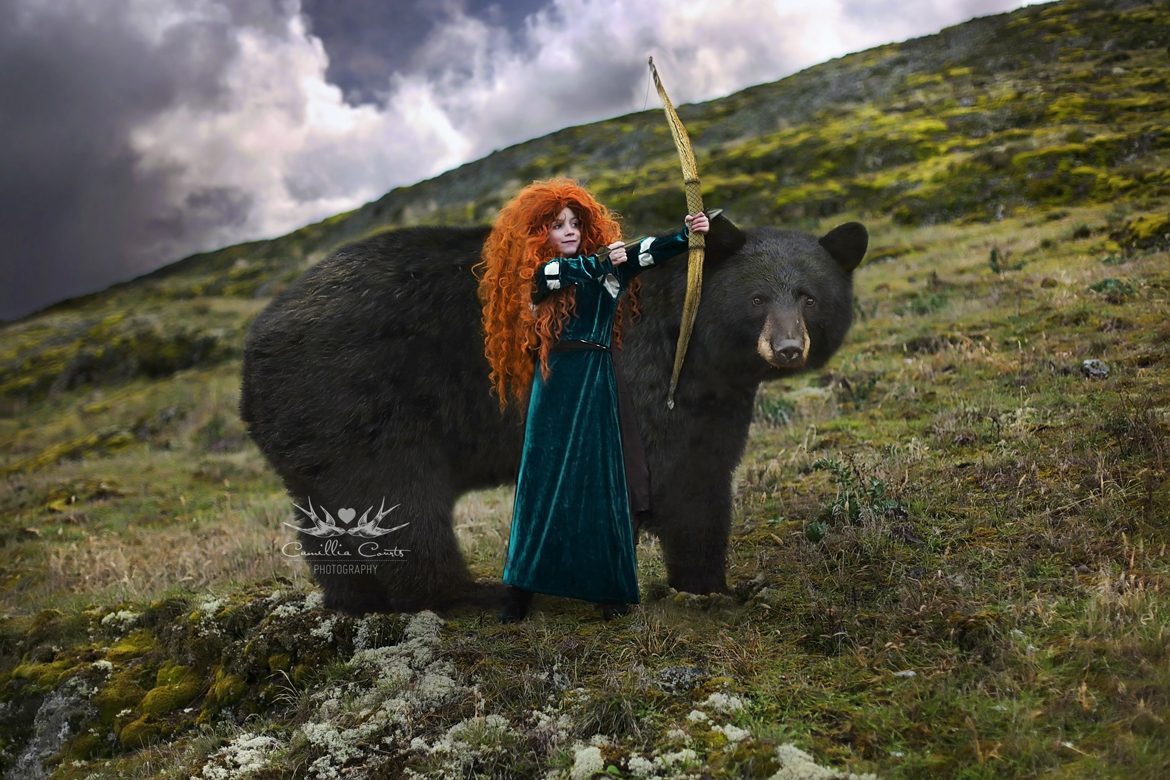 While you might prefer to avoid Disney altogether, for many children Disney movies and characters are a big part of their childhood. This mama and photographer, Camillia Courts, chose to run with the princess stories and dress her daughter up (and herself) to create elaborate Disney scenes.