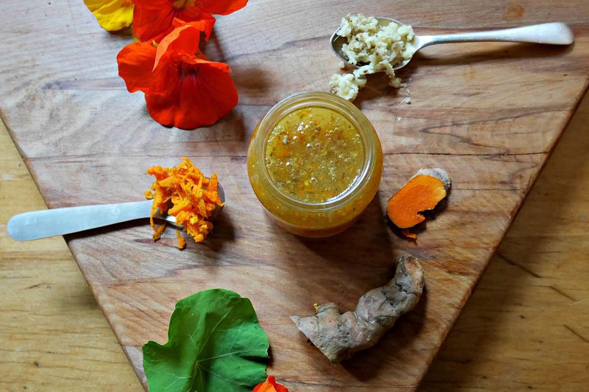 This turbo charged honey is essential for times when you are feeling under the weather or are fighting a low level infection and would prefer not to use antiobiotics. It uses the wonder root, turmeric, alongside ginger, honey and coconut oil to offer anti-inflammatory, anti-bacterial and anti-fungal support. You can take a teaspoon full a day or spread it onto toast in the morning.